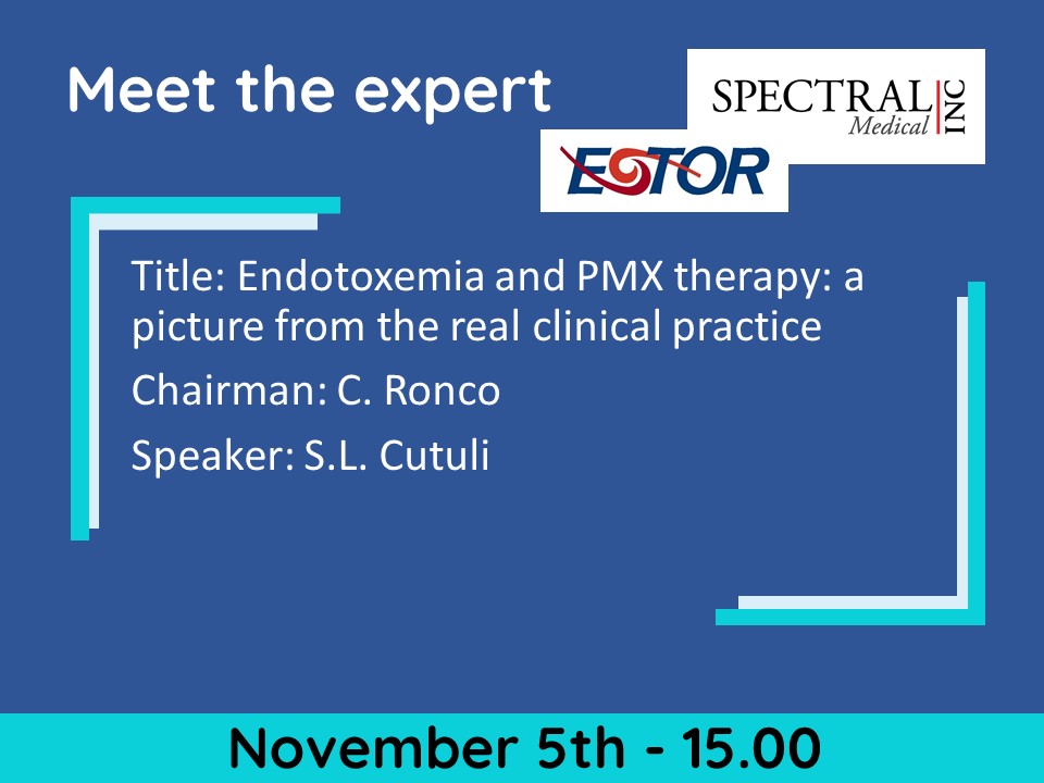 The webinars contain a compendium of current knowledge on Critical Care Nephrology and cover two main topics: 1) Acute Kidney Injury (AKI) describing the epidemiology, pathophysiology, mechanism, prevention and diagnosis through biomarkers and action strategies in different settings such as cardiac surgery, intensive care unit, cardiology, nephrology and sepsis. 2) Continuous Renal Replacement Therapies (CRRT) describing indications, modalities, prescription and delivery, different techniques and clinical results. Special emphasis will be given to conditions of kidney damage/dysfunction, sepsis, fluid overload and settings such as oncology, cardiology and cardiac surgery, trauma and sepsis, and finally septic shock. The new sorbents, membranes, machines and therapies available in this field are presented as well as new treatment strategies and recent trials in the field. Finally, a section will be dedicated to the SARS-Cov-2 pandemic and the consequences in intensive care and nephrology.
