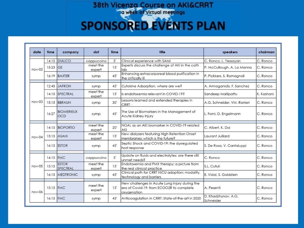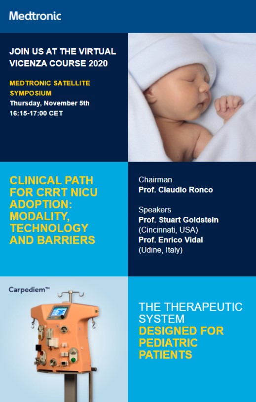 For this reason, the organizing committee of the Vicenza AKI and CRRT conference 2020 has decided, in collaboration with the scientific committee, to modify the logistics of the conference making it fully virtual. For this purpose, a special web-based platform has been identified and implemented to create a full scientific program, including the topics and the speakers that were originally scheduled in the residential version of the course.