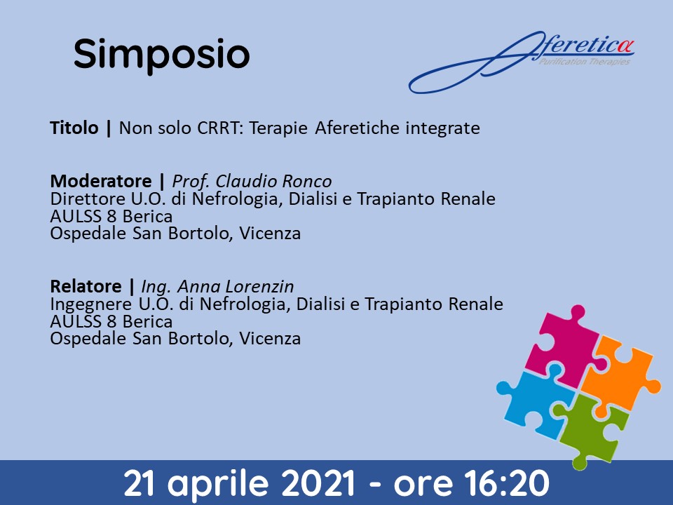Videoconferenza LIVE per Infermieri, Infermieri Pediatrici, Tecnici Perfusionisti Cardiovascolari, Medici Nefrologi, Medici Intensivisti, Medici Pediatri, Medici Internisti e Biologi